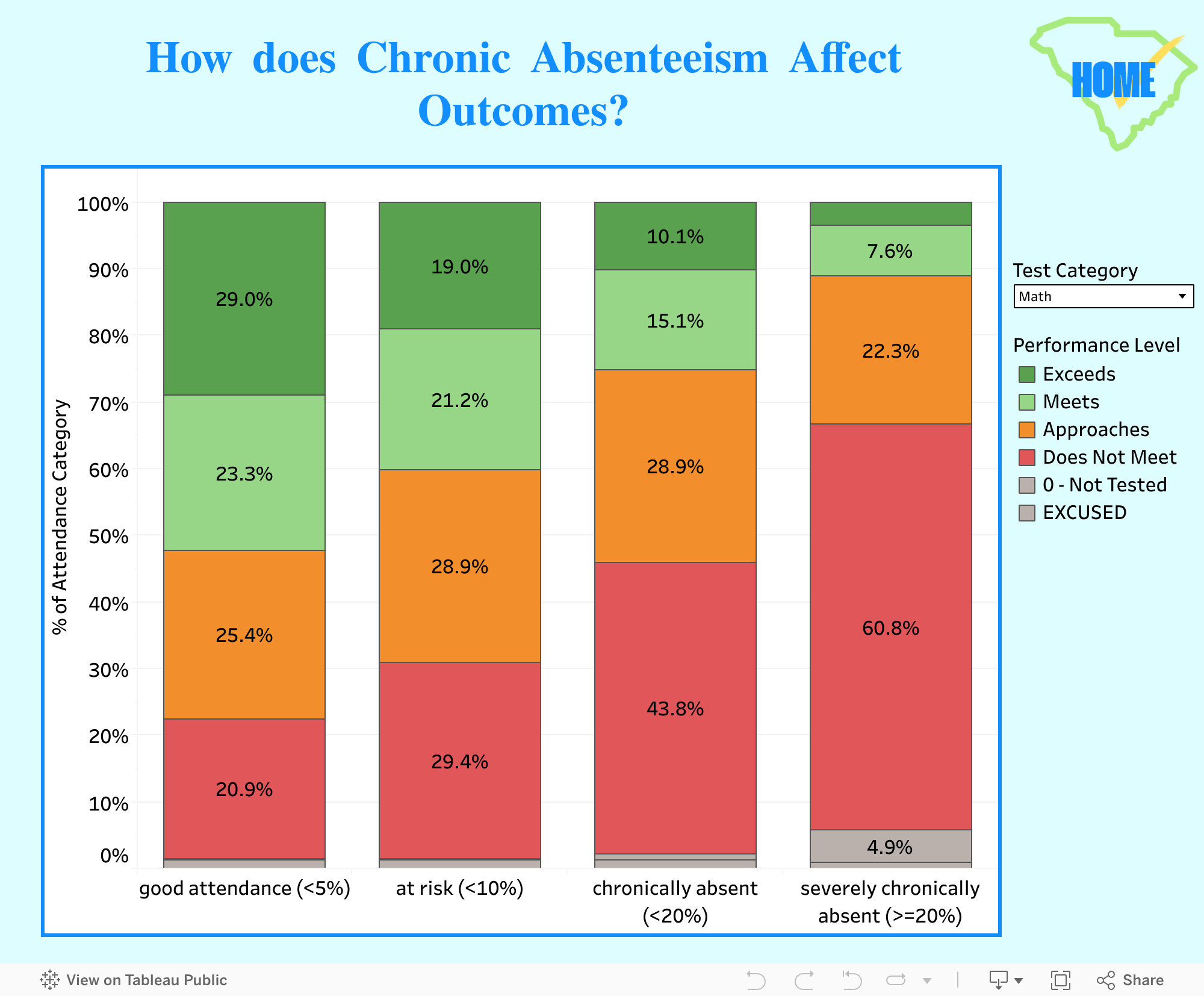 The impact of attendance on 3rd to 8th grade testing is reflected in the interactive dashboard illustrating ELA and Math scores.
